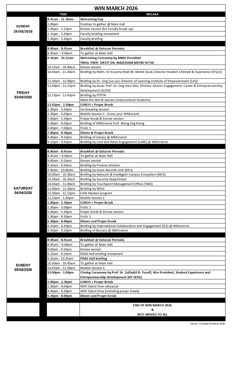 WIN Schedule
